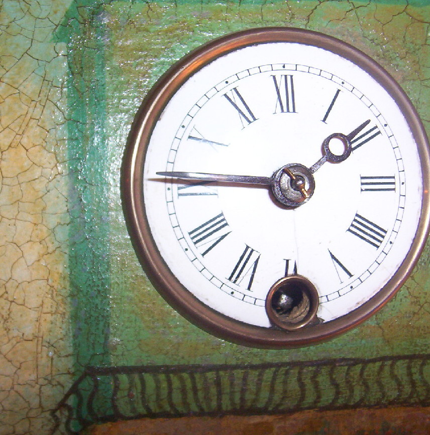 The clock is a balance wheel movement which might not be the original, but it is still quite old. It is a 30 hour movement, In good running order.