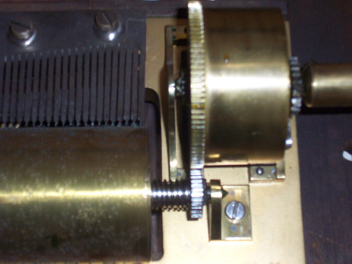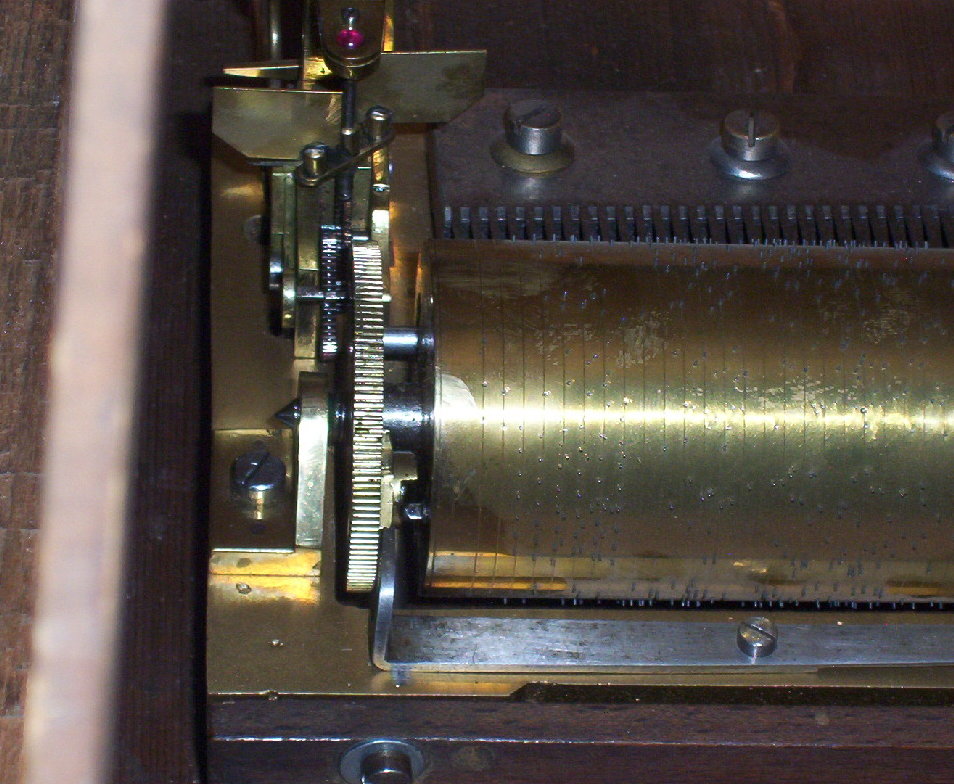 The best part is that there is a Big music box that plays 6 songs. There are controls at the bottom that allow for play, repeat etc. The music box is in excellent condition and plays 6 wonderful songs, clear as a bell !